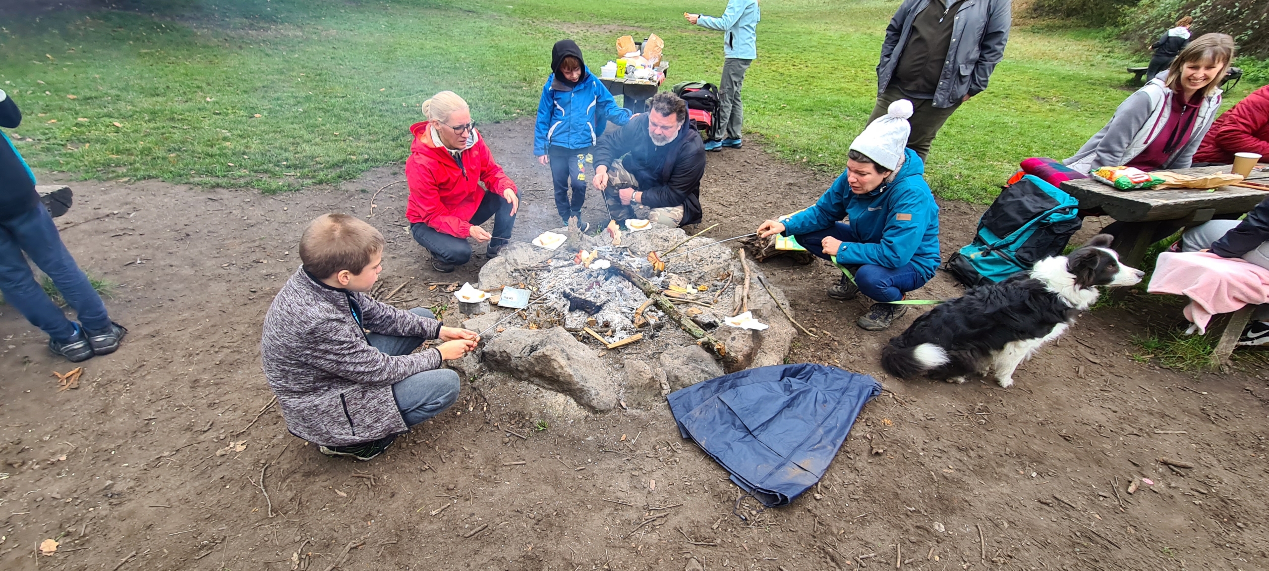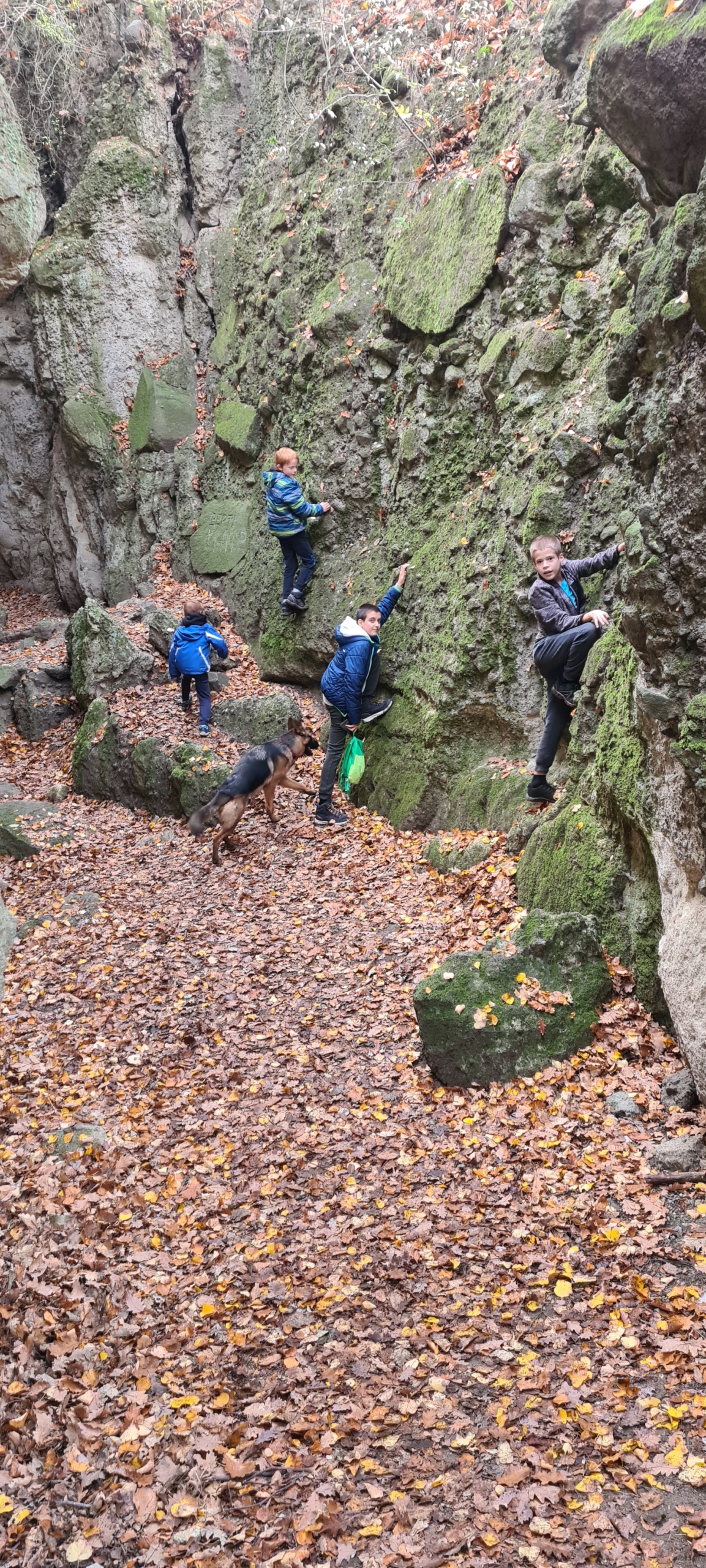 Reggel 10 órakor gyülekeztünk Szentendrén az Anna-völgyi vízesésnél, ahonnan közösen elindultunk a kellemesen lankás, néhol kicsit meredekebb hegyi ösvényen. Az út során Szabó Balázs kollégánknak köszönhetően megismerkedhettünk a helyi élővilággal, különféle gombákat, növényeket figyelhettünk meg. A körülbelül 6 km-es út végén a Czibulka János Kőhegyi Menedékházhoz érkeztünk. A menedékháztól még elsétáltunk a kilátóig, ahonnan csodálatos látvány tárult elénk. Miután kigyönyörködtünk magunkat a látványban, a menedékházba visszasétálva a gyerekekkel közösön tábortüzet raktunk. A közös ebéd elfogyasztása után (természetesen a ház specialitását, a Kőhegyi-kolbászlevest ettük) a tűzön szalonnát, virslit és pillecukrot sütöttünk, amit a gyerekek nagyon élveztek és még a négylábú kísérőinknek is csurrant cseppent pár jófalat.