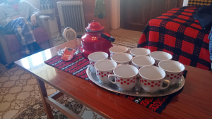 Forró csipkebogyó teával vártak minket – és a csoport rögtön otthon érezte magát. Mindenki talált valamit, amire ráismert. Valaki a szekrénysornál állt meg hosszan. Valaki a hímzéseket nézte, és csendesen mosolygott. Valaki megfogta az ágytakarót, és sokáig tartotta a kezében.