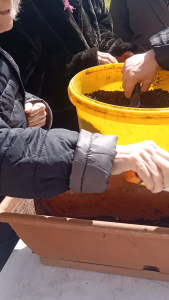 A tízórai után kimentünk a szabadba. Egy kicsit ültettünk – és ez is több, mint aminek látszik. A kertészkedés mozdulatai mélyen bevésődött készségek: hogyan kell a palántát tartani, hogyan kell a földbe helyezni, hogyan kell ráhúzni a talajt. A kéz tudja ezeket a mozdulatokat akkor is, amikor a szavak már nem jönnek.