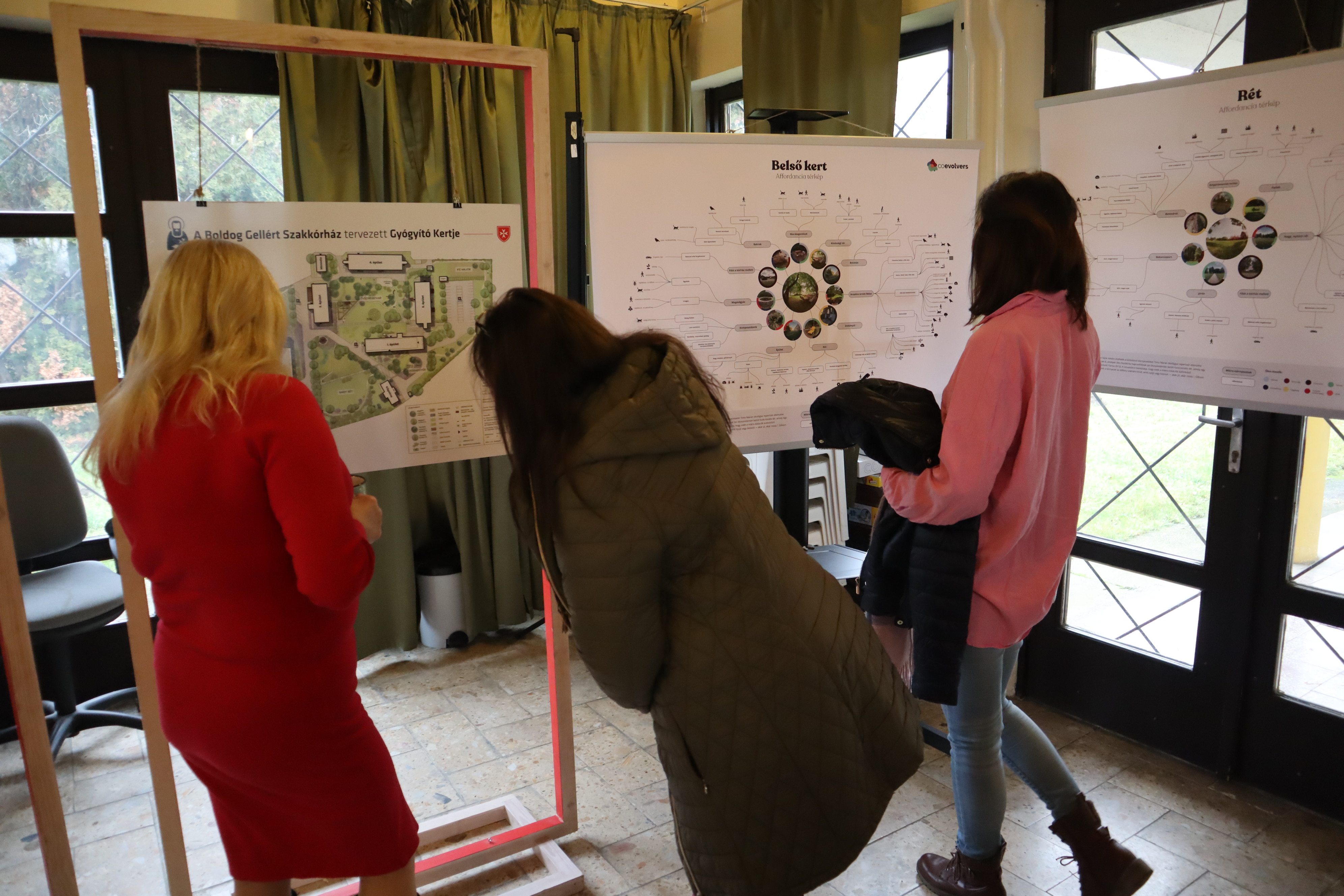 A kórház idei karácsonyi eseménye fontos mérföldkő volt a Coevolverses gyógyító kert projekt számára. Az alkalom során bemutattuk a terápiás kert végleges tájépítészeti terveit és a Kert Kartát. Bepillantást adtunk azokba a térképekbe is, amelyek a kórházkert élővilágának szempontjából mutatják be a kertet. A nagy méretben kinyomtatott anyagok az orvosi könyvtárban tartott eseményen egy kisebb kiállítás keretében voltak megtekinthetők, és lehetőséget adtak arra, hogy a kórházi kollégák közvetlenül beszélgessenek a tervezőkkel és a kutatókkal.