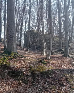 A nap kedvezett nekünk: kellemes, napos tavaszi idő fogadott, és a Zsivány-sziklákig vezető ösvény szépen kínálta magát. Az erdő még a téli álmát aludta – a fák kopaszak, a csend sűrű –, de aki figyelt, az már itt is megtalálta a tavasz első jeleit. Néhány bátor kis növény már előbújt a lehullott levelek alól, a madarak éneke betöltötte a lombtalan ágak közötti teret, és egy hatalmas erdei hangyaboly is megállásra késztetett minket – benne már élénken nyüzsögtek a hangyák, mintha ők sem akartak volna tovább várni a tavaszra.