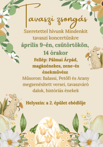 Szeretettel hívunk Mindenkit tavaszi koncertünkre április 9-én, csütörtökön, 14 órakor.