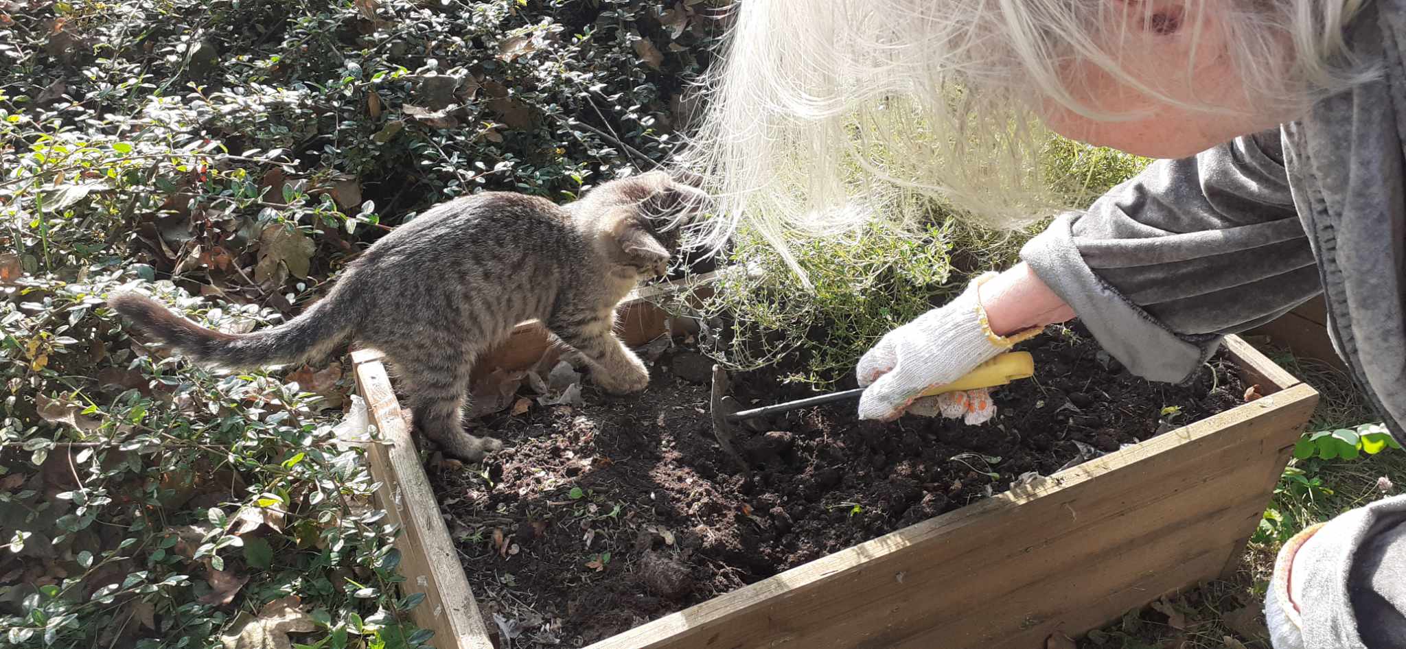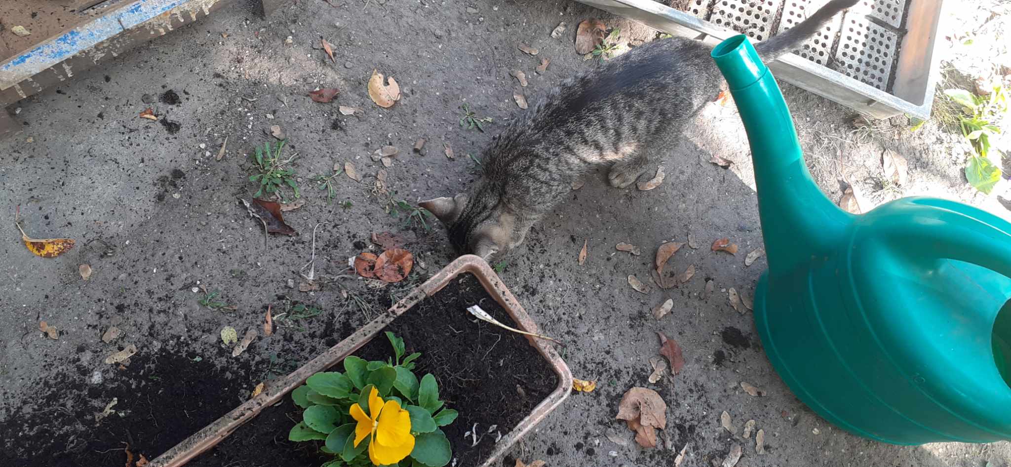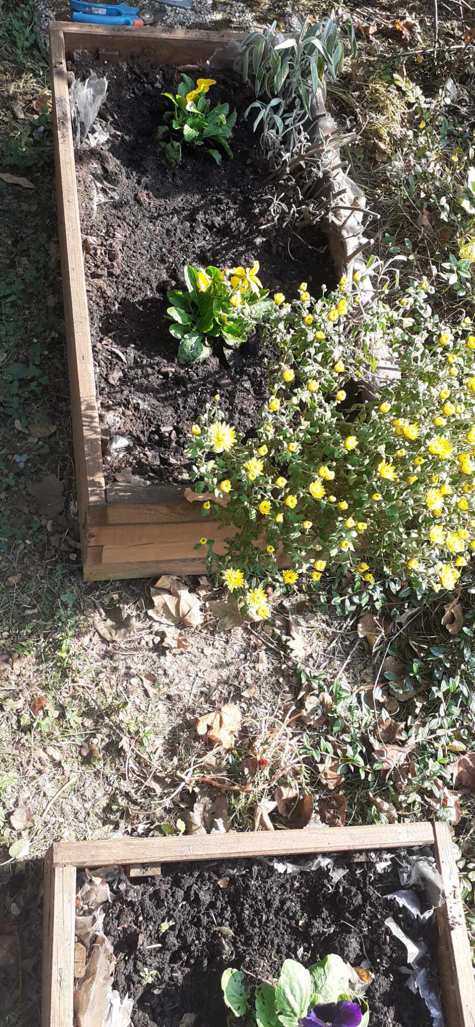 2023.10.14-én, az ősz a legbarátságosabb arcát mutatta: verőfényes napsütésben, kellemes melegben cseréltük ki az egynyári virágokat a jövő tavaszig nyíló árvácskákra. A betegek együtt lazították fel a virágládák földjét, szedték ki a cserepekből a palántákat, de volt olyan, aki a vizesvödröt cipelte, vagy a gazokat gyűjtötte halomba. A kertben lakó kismacskák kiváncsian és nagyon aktívan vettek részt az ültetés összes fázisában. A munka végeztével jól esett békésen üldögélve sütkérezni egy kicsit.